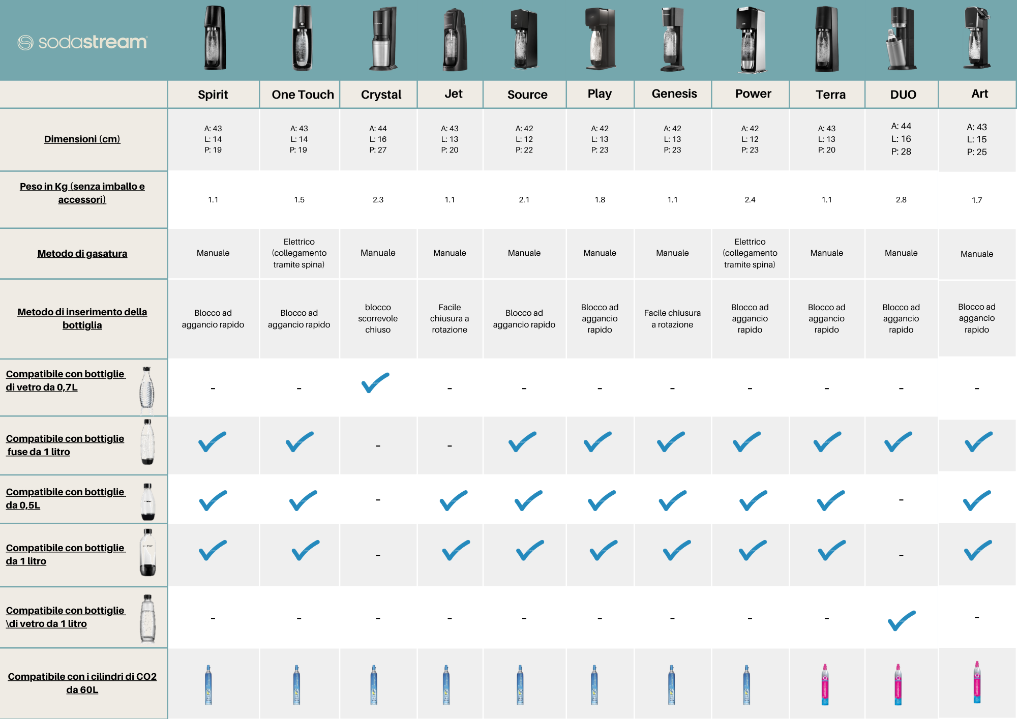 Compatibilità Bottiglie e Caratteristiche Gasatori